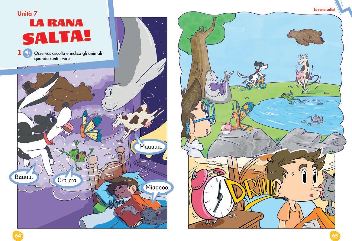 ▶ Die „Sintesi animate“ umfassen kurze Animationsvideos, die auf unterhaltsame Weise die wichtigsten Kommunikationsfunktionen wiederholen, die in jeder Einheit durchgenommen wurden.