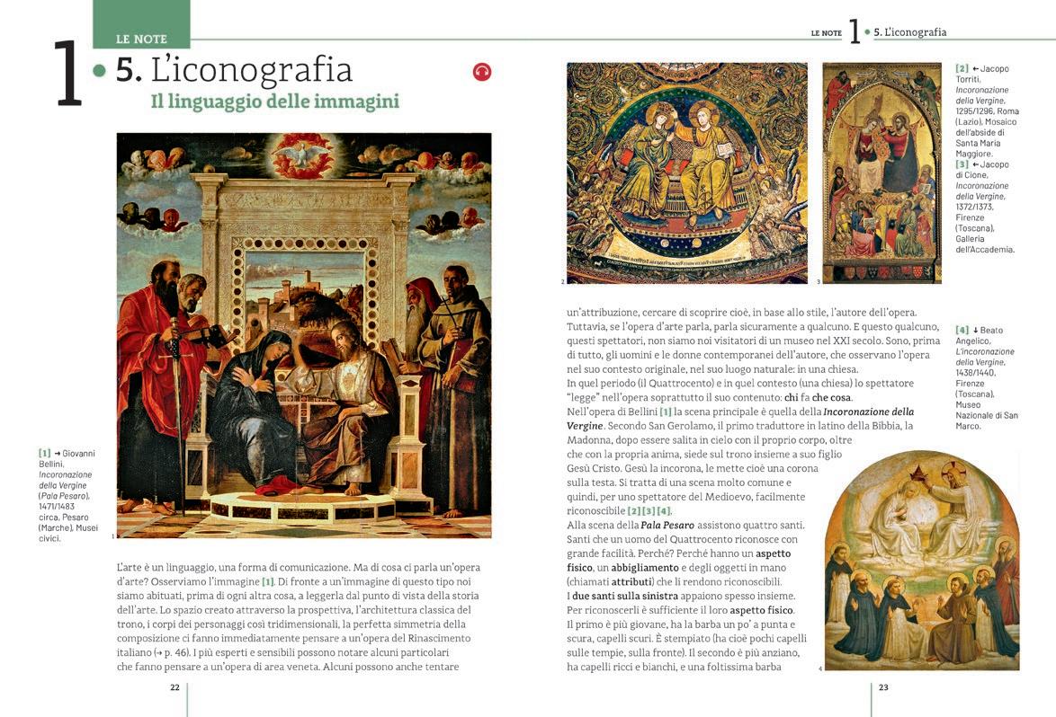 Der komplette und eigenständige Band enthält vereinfachte und leicht lesbare Lektionen der Kunstgeschichte, von denen jede von dem Absatz „Le coordinate“ und von einem „Opera chiave“ begleitet und durch „Architetture in 3D“ und „Letture d’opera animate“ unterstützt wird.