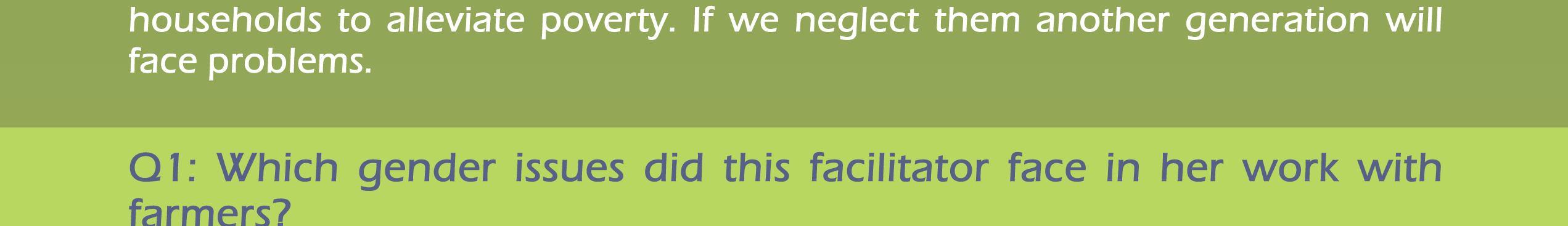 This booklet has been written for a training context of Farmer Field School facilitation. The stories are accompanied by questions to provide input for a participatory session.