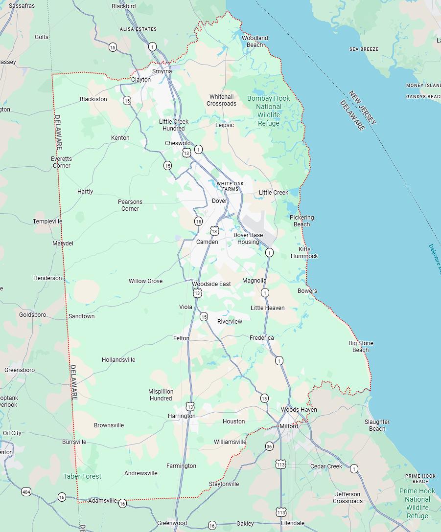 Kent County is Delaware’s calm, central heartland, home to almost 200,000 people. Centered around the state’s capitol Dover, it’s known for its farmland, deep history, and the Dover Air Force Base. With mild summers, Kent County offers a small-town lifestyle that’s easy to fall in love with.