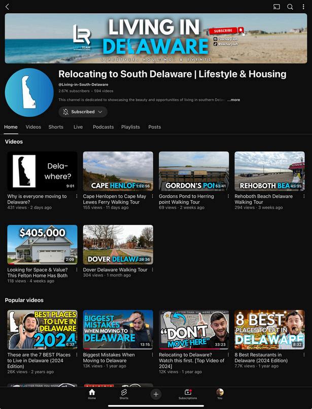 Search Relocating to South Delaware on Youtube and join us for curated content that keeps you informed about everything happening in Delaware’s vibrant market. Explore fun facts, local history, and unique insights about the First State perfect for deepening your connection with Delaware. Whether you are a local business owner or just very passionate about Delaware, our channel has something in store for you! Don’t miss out subscribe now and stay connected to all things Delaware!