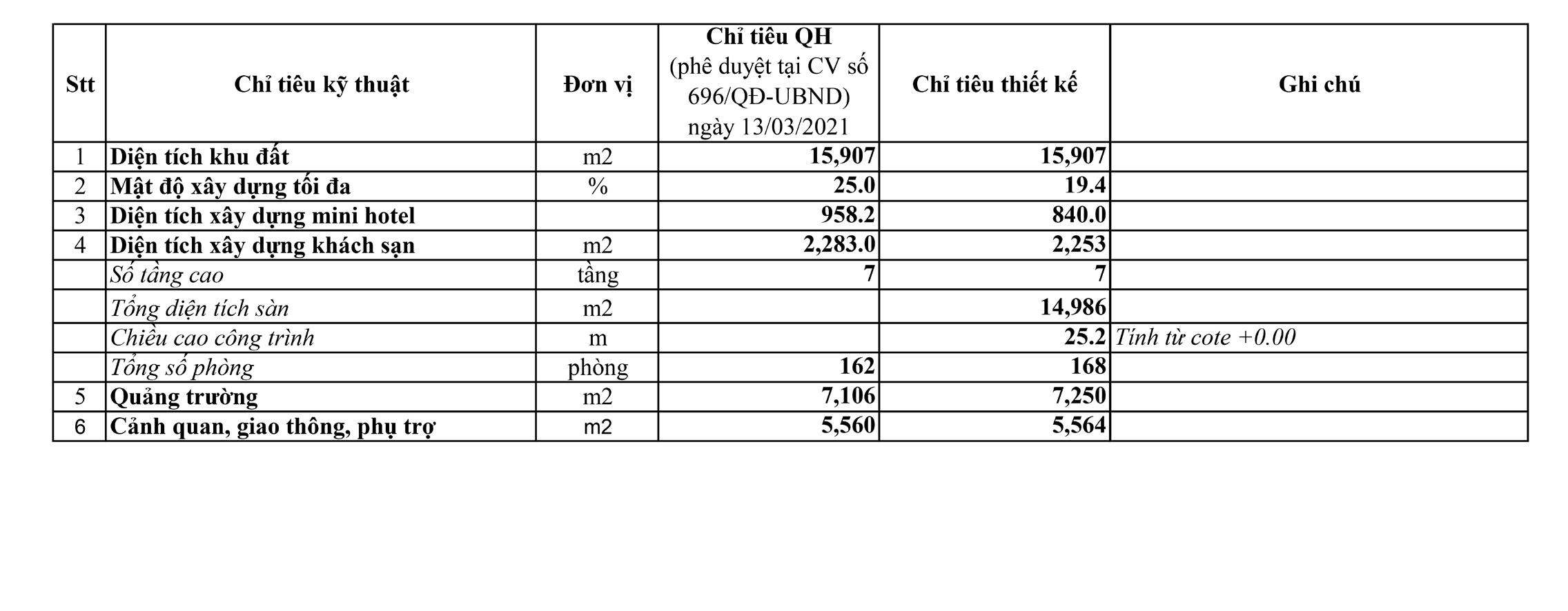 BẢNG THÔNG SỐ THIẾT KẾ