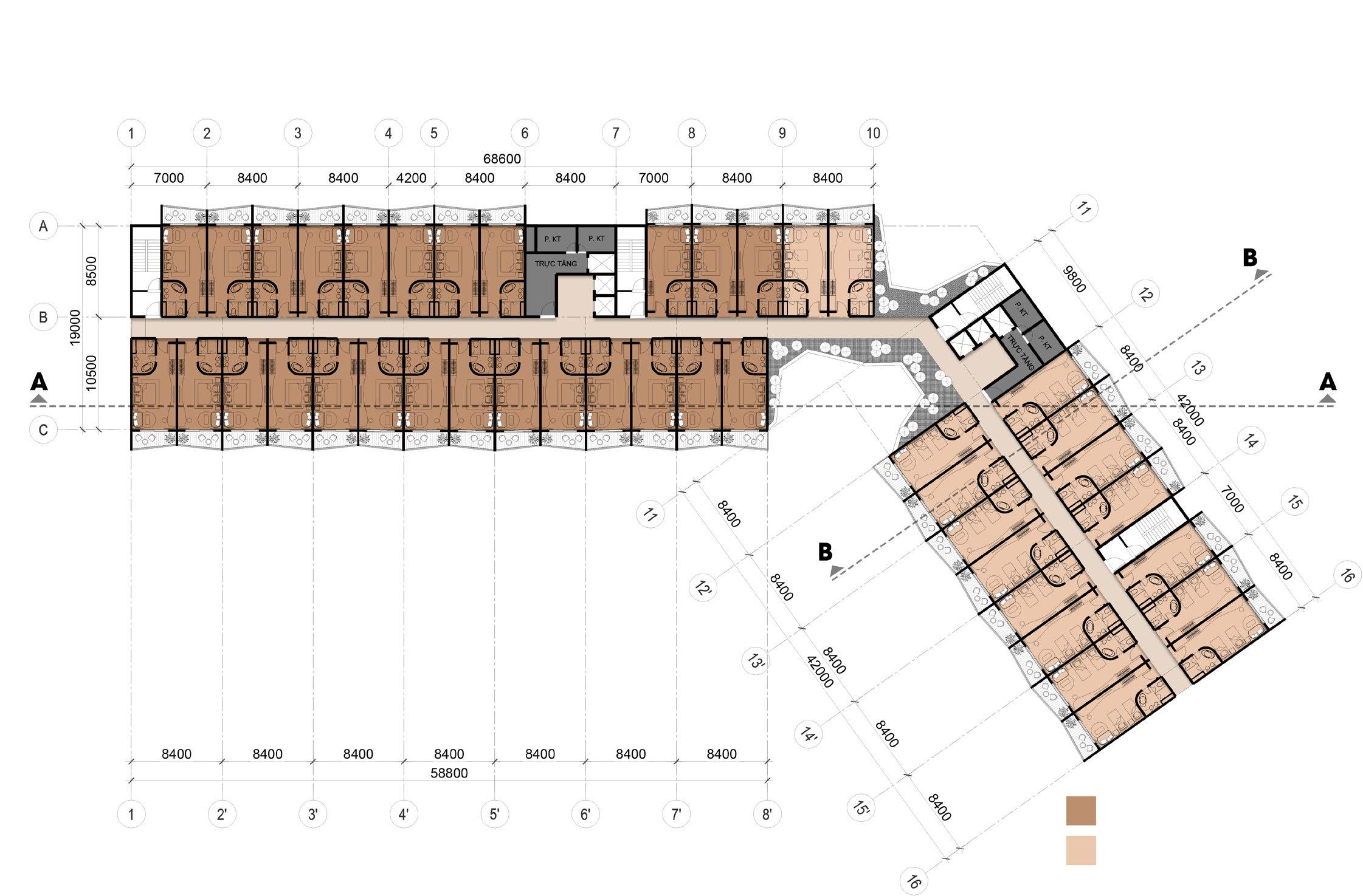 Twin rooms / 68 phòng ( 40% )