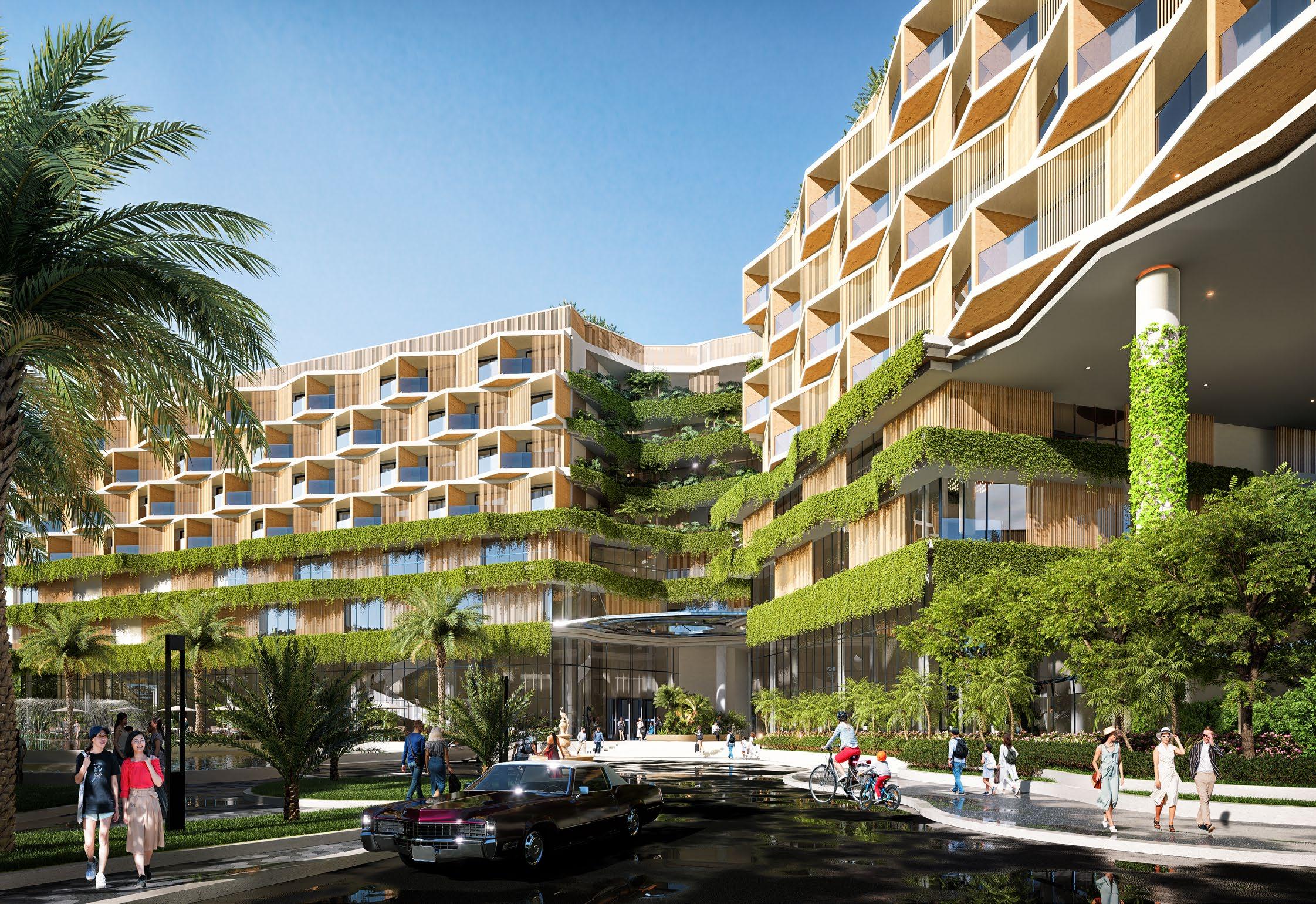 Lấy cảm hứng từ thiên nhiên tại Mộc Châu, những đường nét kiến trúc thể hiện hình ảnh những dãy núi nhấp nhô ẩn hiện dưới những tầng mây, mang lại sự gần gũi và hài hòa với môi trường xung quanh. Bằng cách sử dụng các yếu tố tự nhiên như cây cỏ, đồi núi, hoặc sông suối, công trình tạo ra không gian nghỉ dưỡng độc đáo, mang đến cảm giác thư giãn và yên bình . Đồng thời, việc áp dụng các nguyên tắc bền vững trong thiết kế cũng giúp bảo vệ và tôn trọng thiên nhiên, góp phần vào việc bảo vệ môi trường.