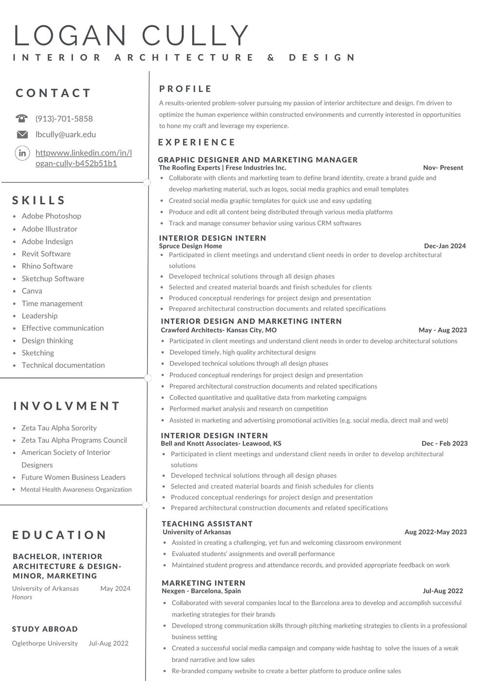 As a fourth-year student pursuing a degree in Interior Architecture and Marketing at the University of Arkansas, my journey in this field has been nothing short of challenging, but extremely rewarding. Design, for me, is not merely a profession but a profound passion that permeates every aspect of my life. It is a relentless pursuit of beauty, functionality, and meaningful human experience within the built environment. The opportunity to blend my knowledge of and experience with design and marketing is extremely exciting