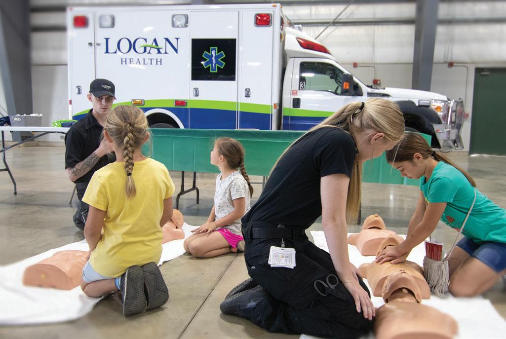 Logan Health EMS staff teach kids CPR basics at our annual Spring into Safety kids fair.