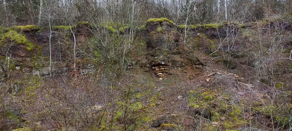 There were two mine shafts, desks, a forge, a depot for benzene and wood, and a scale for the carts (Buggien) The mining site "Mine Grôven" was closed in 1957.