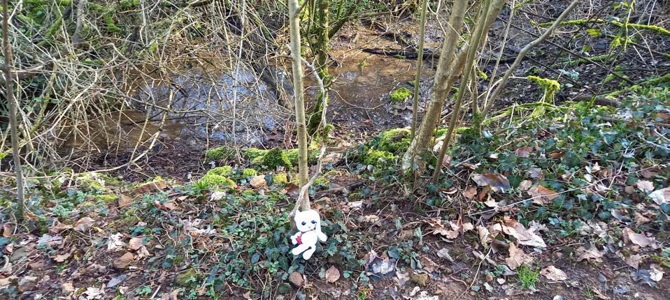 We find this little pond of water, and somehow I am the lucky bunny as a dragonfly flies past me.