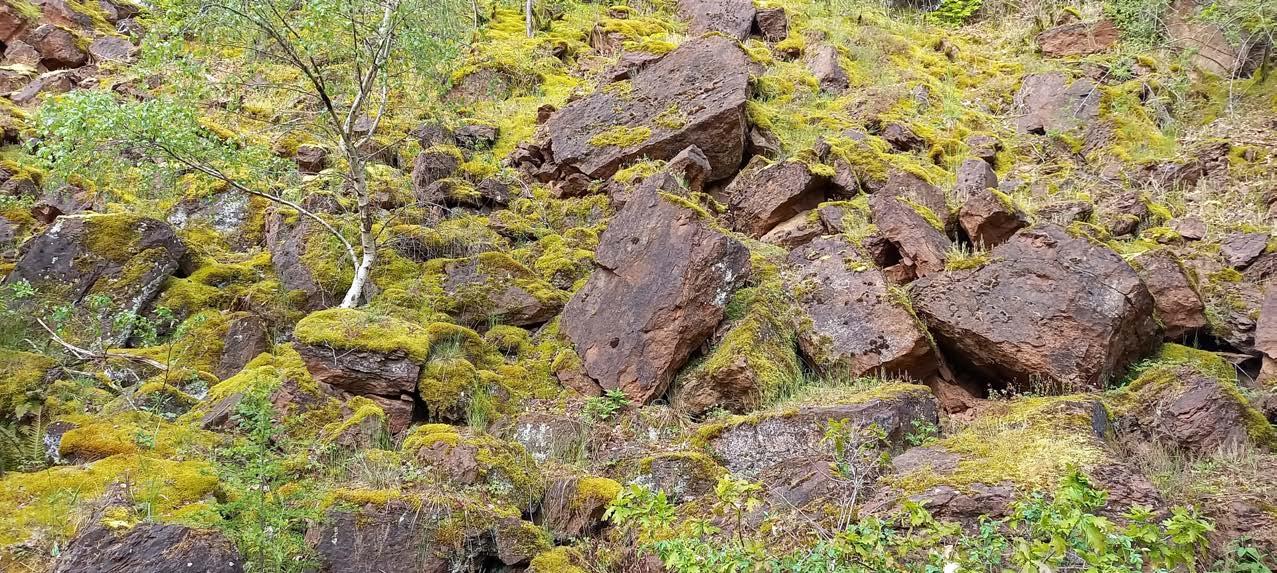Green! I love the blue sky and the rock fully covered in moss is really comfortable to sit on.