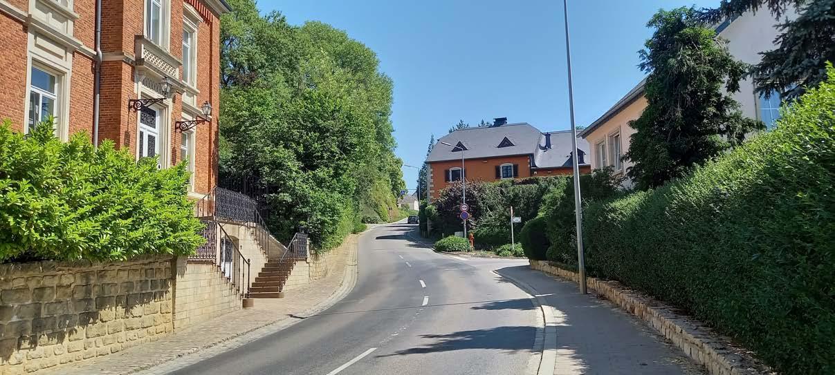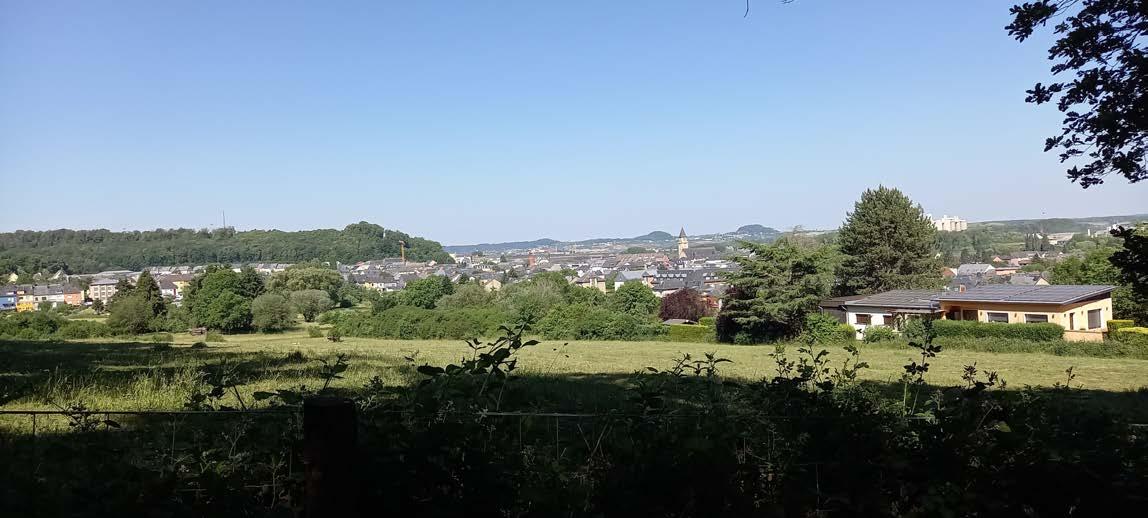 We walk to the outskirts of Schifflange. I enjoy this view and the shade we have is really handy. The funny thing is that we are going to have a closer look at Schifflange. Some of the houses I have seen there are just beautiful.