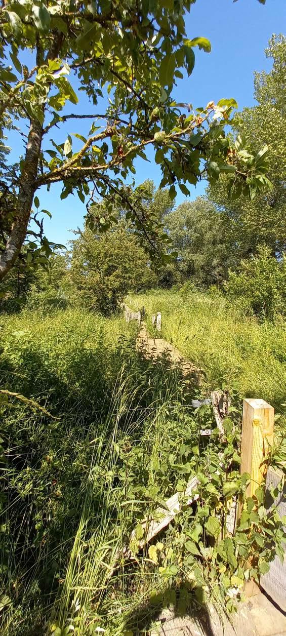 Everywhere I look there are nettles. And some of those nettles were humongous beasts. Carefully, I navigate around them with the help of a sturdy stick and with a bit of luck I manage to get past without being stung once. Never again!