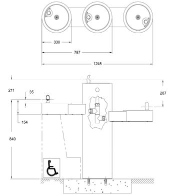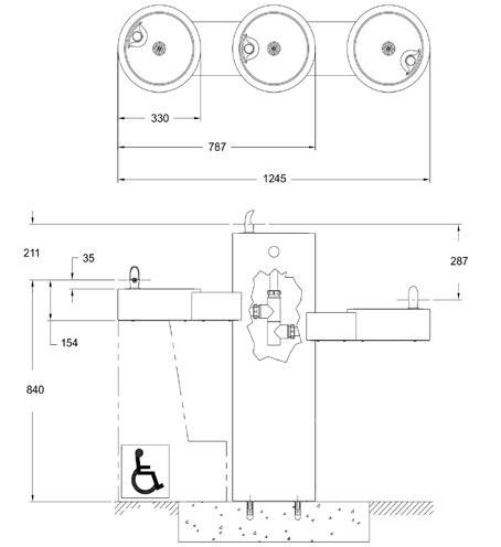 Lavabos rigoles mureaux et Lavabos rigoles sur pieds en acier inox • Fontaines circulaires