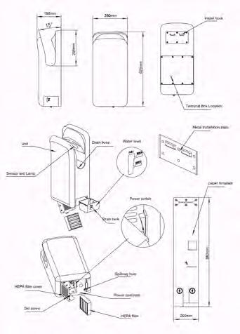 • Dimensions: Ø 100× P 110 × H 220 mm