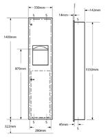 L 130 x P 80 x H 260 mm