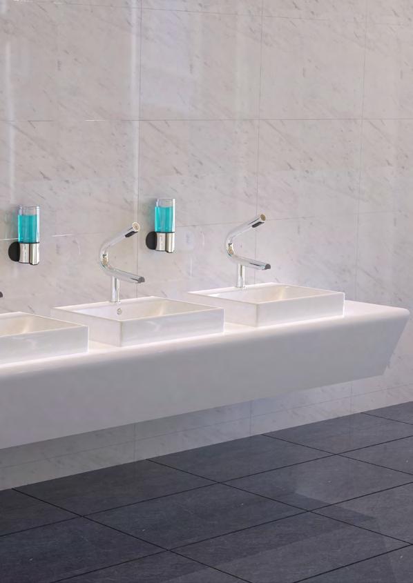 Outre l'ajout de lavabos rigole de 3000 mm de long, le développement d'une gamme de distributeurs automatiques de savon et de gel désinfectant sans contact, nous vous proposons aussi de nouveaux modèles de sèche-mains automatiques . Un bec d'eau de conception contemporaine, commandé par capteur, a aussi été ajouté à notre catalogue pour nos fontaines à boire.