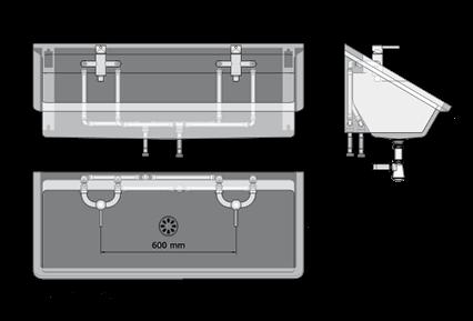 Lave-mains chirurgien • Lavabos multipostes • WC • Lavabos • Robinets • Accessoires