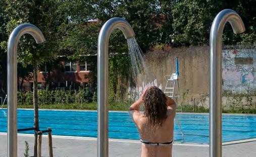 L'architecte impliqué dans le développement et la conception de ces piscines recherchait des douches d'extérieur durables, résistantes au vandalisme, faciles à utiliser et résistantes au gel ou faciles à enlever. Elles qui devaient également avoir un beau design. La colonne de douche TROPIC de Loggere a attiré son attention.