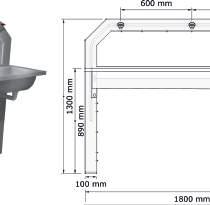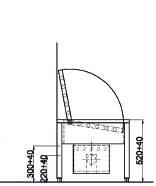 Einbaubecken CREATIV zum Einsetzen von oben in eine bauseitige Tischplatte mit Ausschnitt Ø 428 mm mit 6 Spannvorrichtungen für Tischplattendicken von 35 bis 45 mm mit Stopfenab- und Überlaufgarnitur DN40 (G1½B) mit Stopfen und Kette Becken D-förmig mit Hahnbank und Hahnloch Ø35 mm.