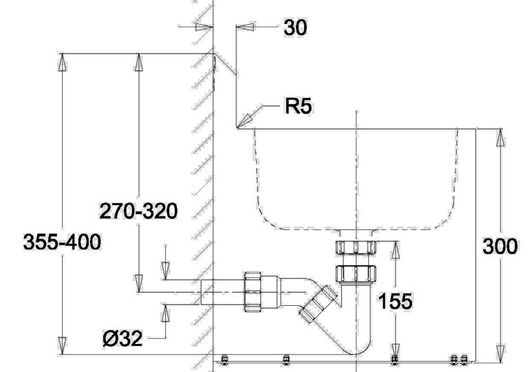 Ohne Überlauf, mit Siphon aus Edelstahl, Werkstoff 1.4301