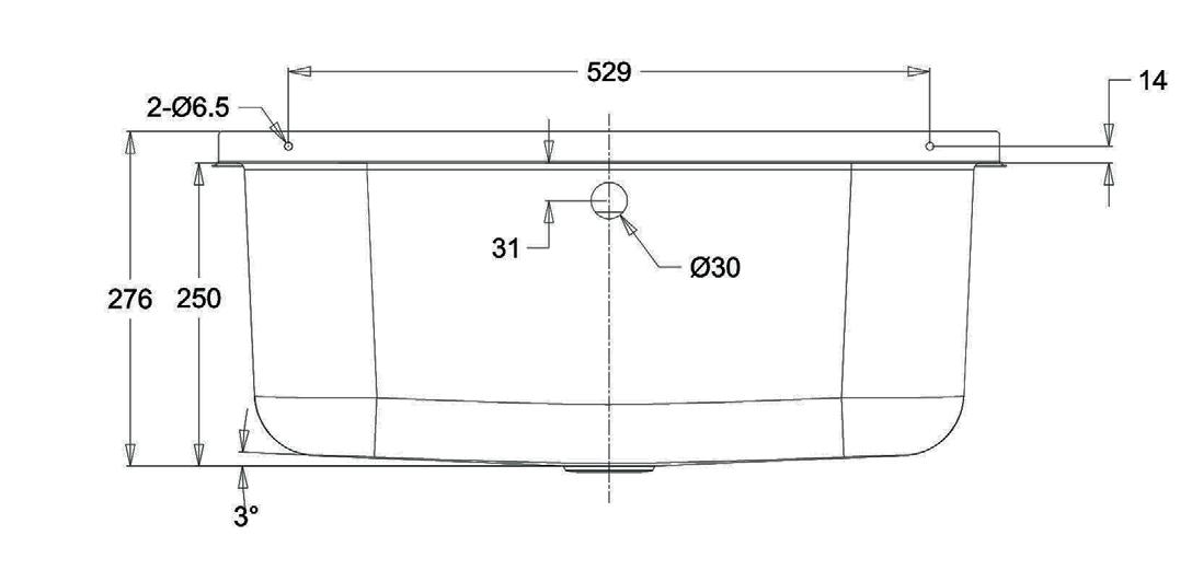 BULLES II - 365 Oberfläche gebürstet, Beckeninnenmaße: Ø 365x160 mm Mit Überlauf 425x160133167