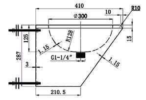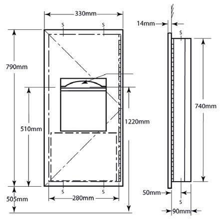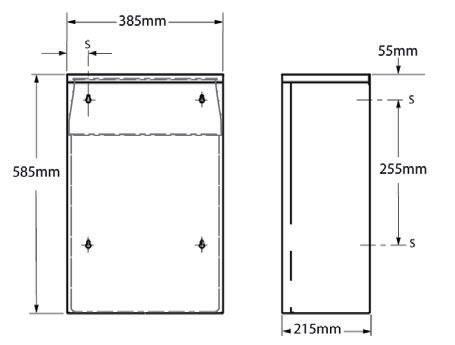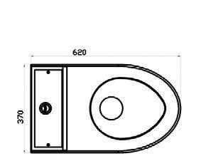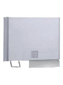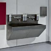 2 mm thick stainless steel. Grincoated in white. Drill holes with internal soap- and disinfectant dispensers for wall mounting. Grinded base mm thick stainless steel.