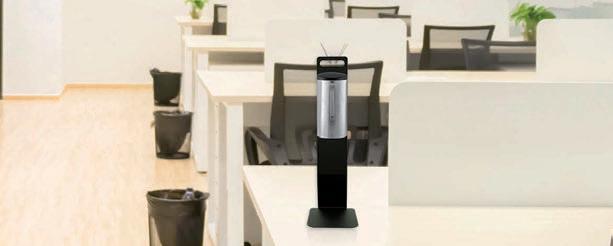 • Deze automatische dispenser verdeelt de desinfecterende gel via een spray op de handen. Deze manier van verspreiding garandeert een betere verdeling van de gel op de handen en vermijdt het druipen op de vloer.