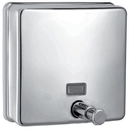 • Elektronische lotion- en zeepdispenser voor wandbevestiging. Volumemeter bestaande uit ronde designperforaties van 4mm in de voorkant. De zeepdispenser kan worden bediend met batterij (4 x 1.5V, AA) of optioneel met directe stroomstekker 230V. Vulreservoir met deksel. Volume van navulreservoir ca. 0,8 liter. Demonteerbaar voor reiniging. Onzichtbaar slot. Incl. sleutel, RVS schroeven en pluggen.