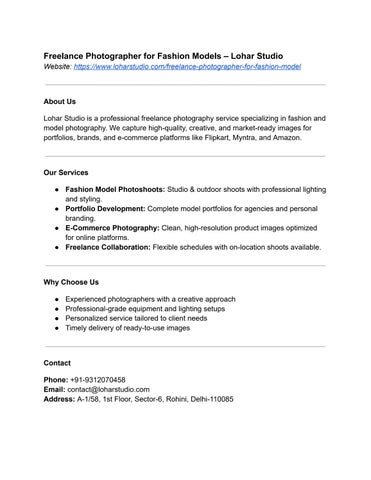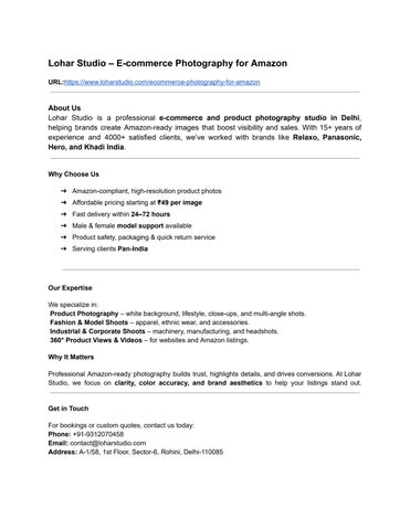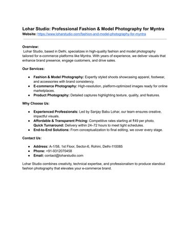 Lohar Studio is a professional product photographer in Delhi, specializing in fashion and e-commerce shoots for Flipkart, Myntra, and Amazon. We deliver clean, high-quality visuals that help brands stand out, attract customers, and grow online.