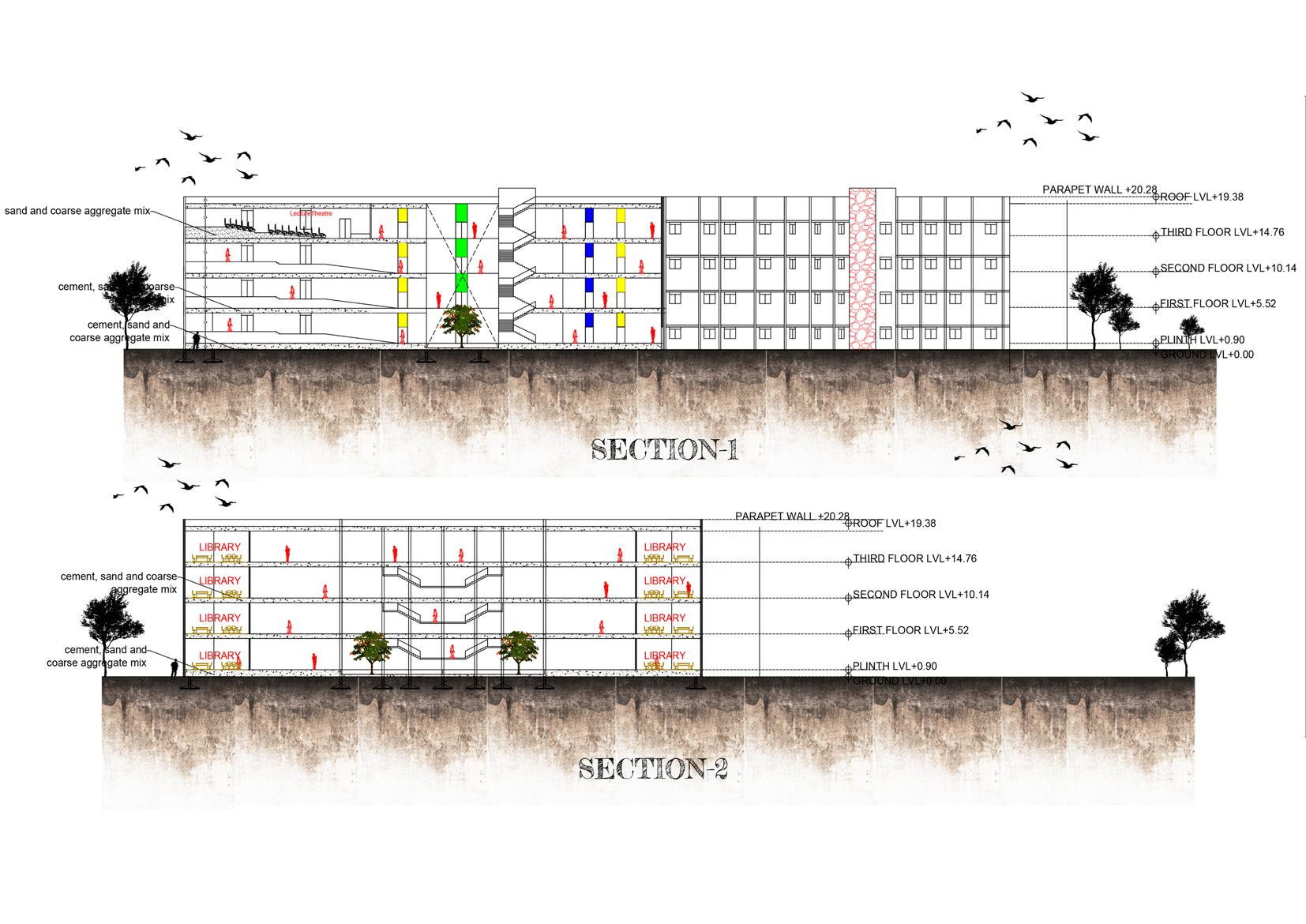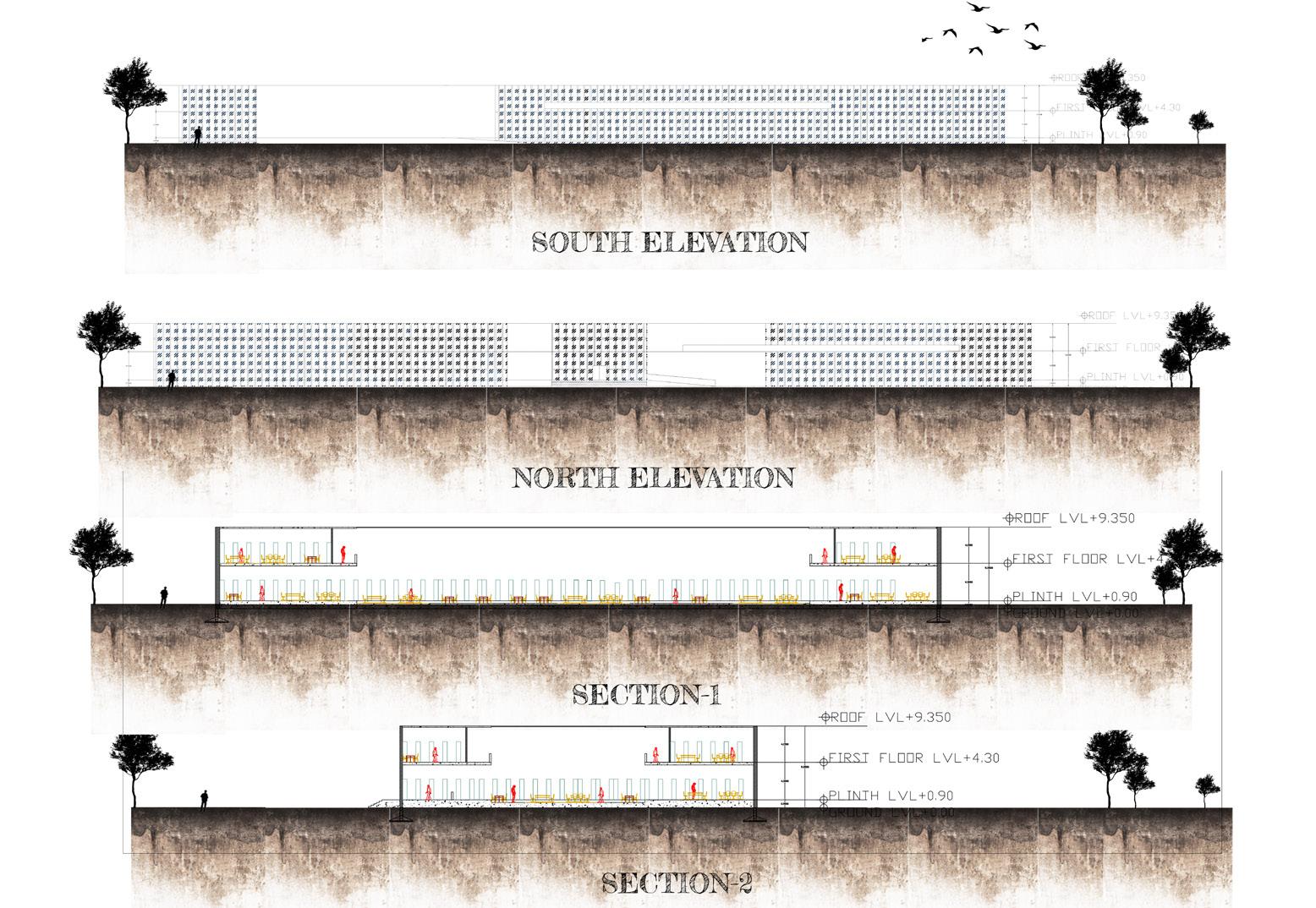 ELEVATION DETAIL- B DETAIL- B FOCUS LIGHT FOCUS LIGHT FOCUS LIGHT RAMP DOWN TO BASEMENT PLOT LIMIT +0'0" +2'6" +1'-6" +1'-6" projection TERRACE FLOOR FOURTH FLOOR THIRD FLOOR SECOND FLOOR FIRST FLOOR GROUND FLOOR ROAD LEVEL BASEMENT FLOOR