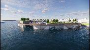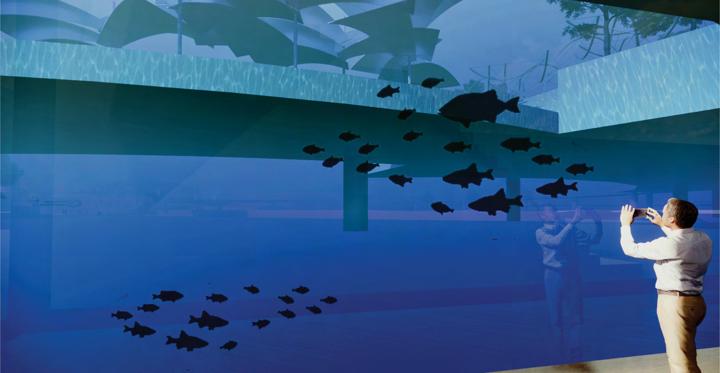 Rather than building sea walls to keep water out, the site is designed to let water ood in, creating new typologies over the course of sea level rise and tide changes.