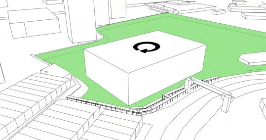 As heavy rain and storms tend to lead to oods in low lying areas, greenery has been implemented in between and around the elevated spaces to help with mitigation. By revitalising the area with greenery, we can implement a natural framework that builds connections from the waterfront to riverside.