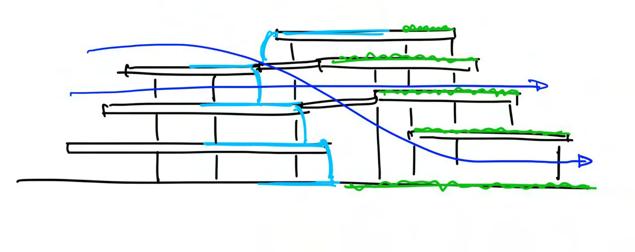 Emphasizing Horizontality through hierarchy by staggering oor slabs