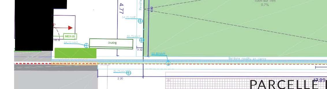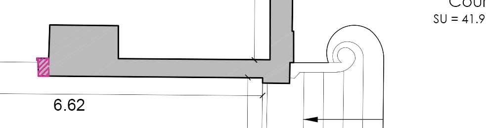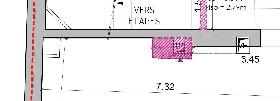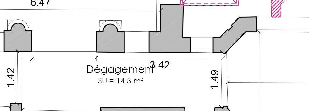 Le tertiaire se répartit sur2 etages, le Rdc et le R+1 quisont en accès direct depuis les rues péripheriques. Cette partie est composée de 2 commerces et un local de bureaux. Le commerce le plus important s’ouvre sur la place au sud