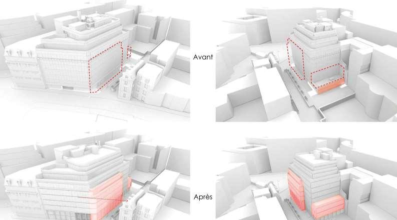 Le concours privé a pour but de produire une extensiondupavillonrespectantlebatimenthistorique ,toutenfaisantlelienavecsonusagecontemporain. L’idéeestderetravaillerl’interieuretd’ajouterunbloc doréjuxtaposéalafacadeinterieure.
