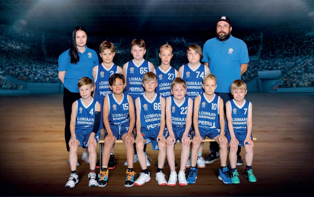 Joukkueen jäsenet vasemmalta: Jussi Varjus (valmentaja), #24 Johannes Kulmala, #12 Samu Kivinen, #13 Aaro Taatila, #47 Renne Kivinen, #15 Frans Fonsell, #30 Pepe Rämö, #6 Lauri Koivisto, #0 Niilo Koivisto, #14 Nikolais Varjus ja JukkaPekka Kivinen (valmentaja).