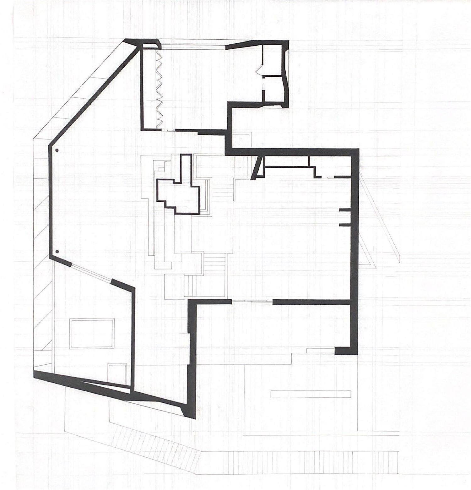 The arrival sequence is one of the most important aspects of the design, because it emphasizes the feeling of uncertainty. The placement of the dwelling was chosen because it creates a space that makes the inhabitant feel as if they were being submerged in water as they travel down the central axis of circulation and into each room. This core mimics the hearth in the precedent study Dark Chalet by Tom Wiscombe.