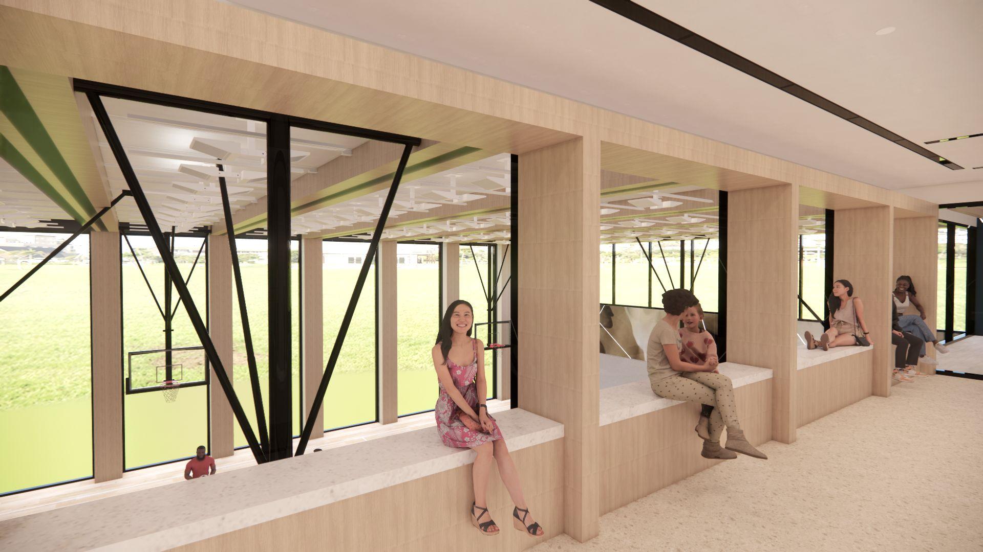 The activity room is a space for all ages to play games (board games, cards, chess, checkers, etc.) with friends and family. A semi-private space to have fun or relax in thecompanyofothers.Thisspaceembodiesthevaluesof El Salvadoran culture with the use of colours and art work.