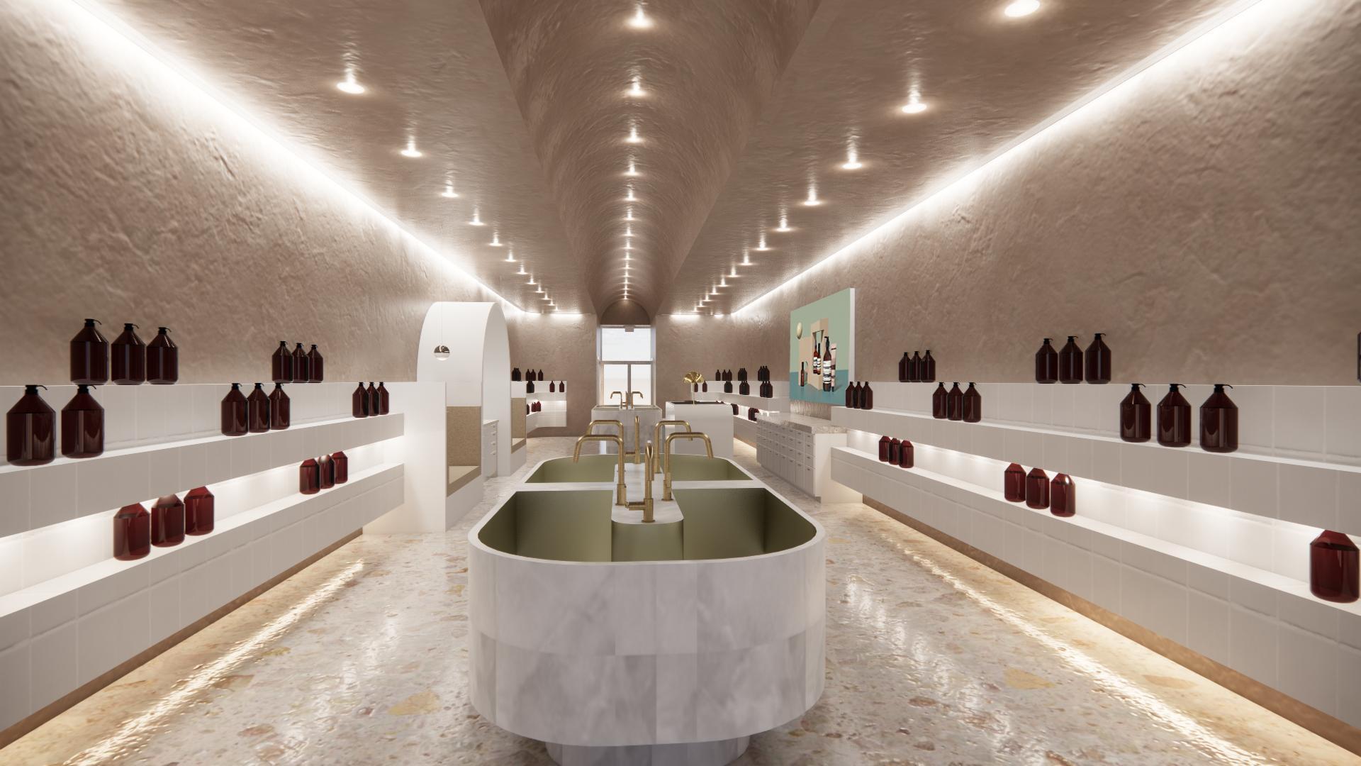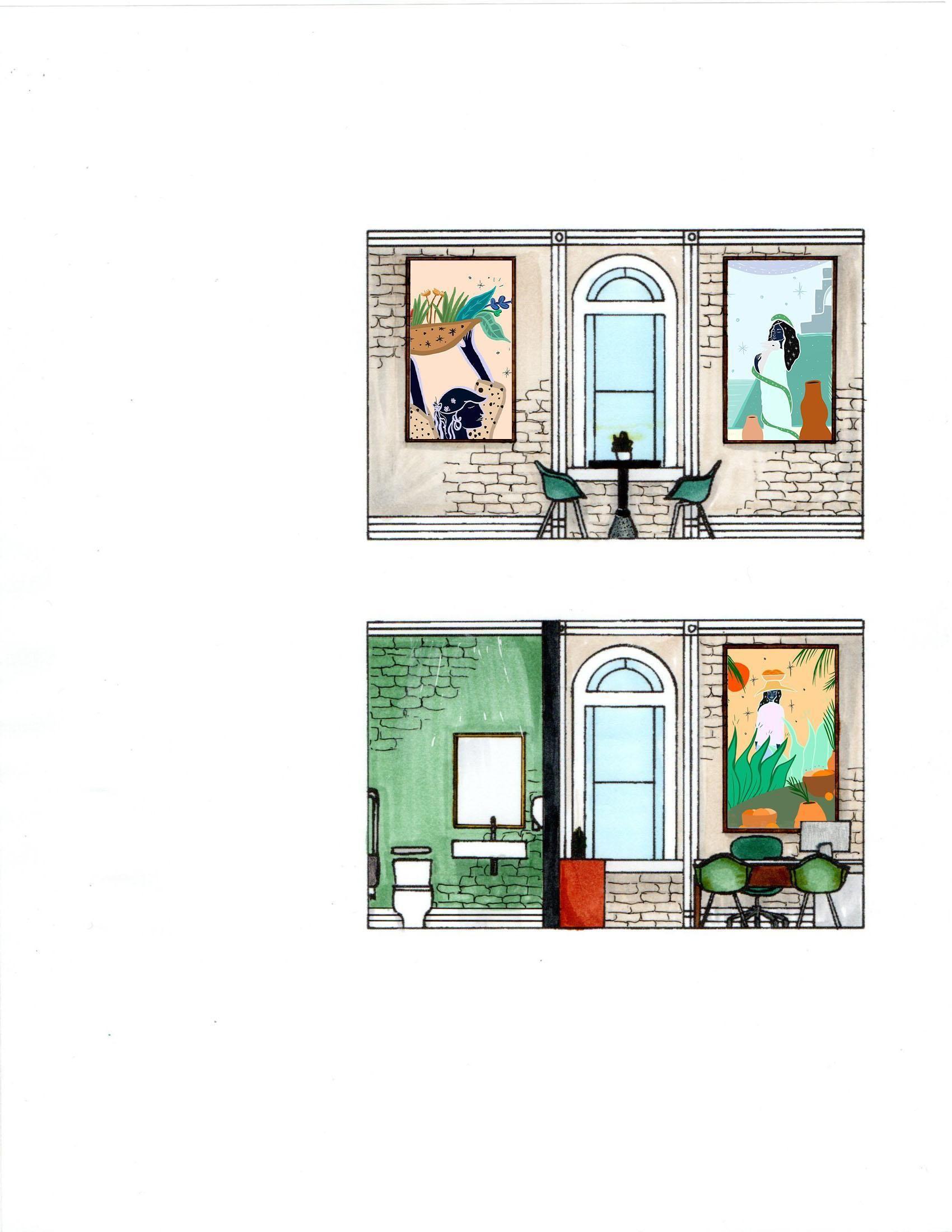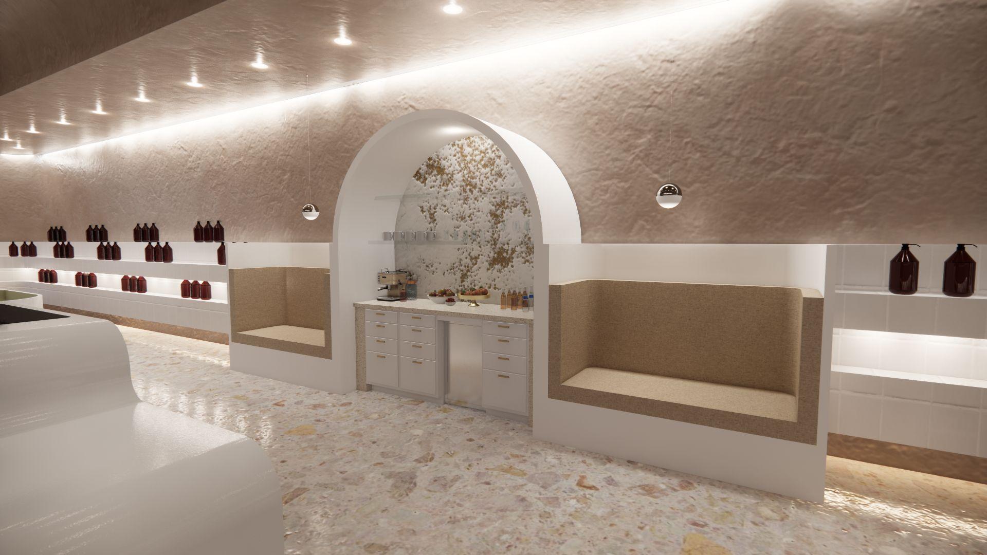 Inspired by the tropical forests of El Salvador, the goal is to create a calming space of peace and tranquility. This is achieved with the use of natural light and different tones of green and blue, which can be found in the elements and textures used within the space. Live greenery and ambient sounds of water bring life and uplifts the soul, while vibrant artworkandmuralsprovidefamiliarity.
