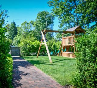 The storybook rear property boasts two brick or bluestone trellised patios that span the home as they overlook idyllic lawns and play areas surrounded by attractive fencing and diverse plantings, all of which make summer entertaining an art form.