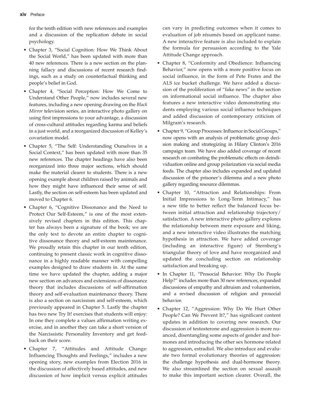 We realize tha t 10 years from now you may not r emembe r a ll the facts, th eories, and names you learn n ow. Al th ou gh we hope you w ill rememb e r some o f them, our main goal is fo r you to ta k e w i th you in t o your futu r e a great man y of the b r oad soci a l psych o l ogical concepts p r esen t ed h erein - a n d, pe rh aps mo re importa nt, a cri tica l and scien tifi c way of thinkin g. If you open you rsel f to socia l psych o logy's magic, we b e lieve it wi ll enrich the way you loo k a t the worl d and the way you l ive in i t.