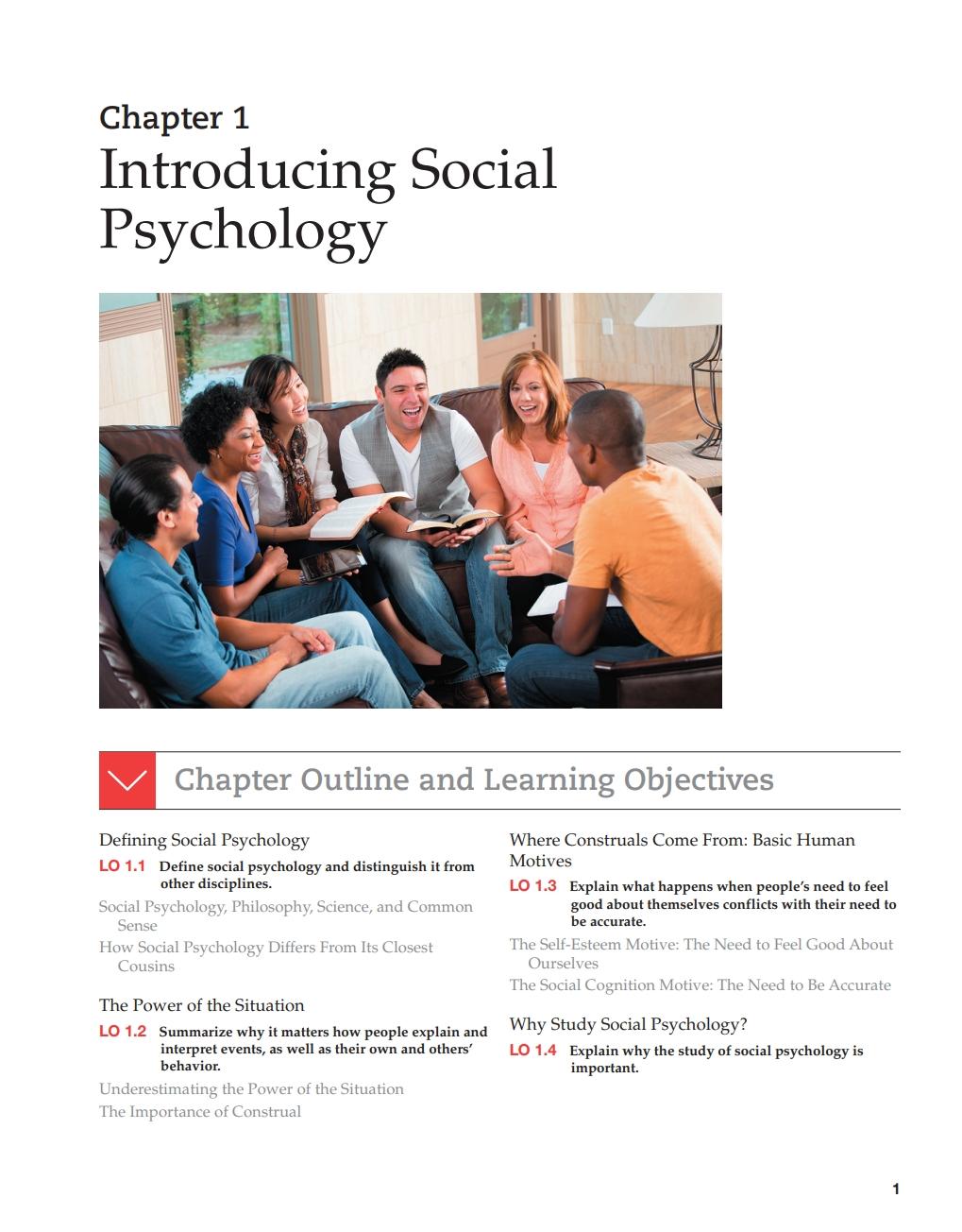 LO 1. 1 D efine social psychology and distinguish it from other discipl ines.