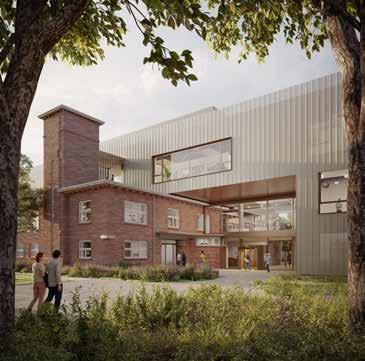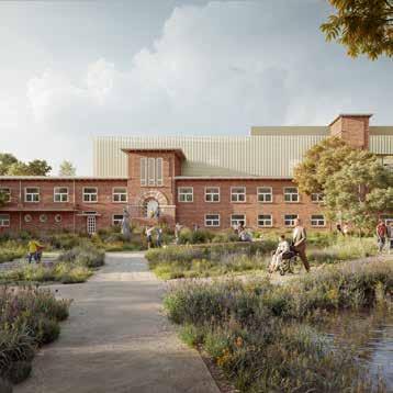 > Buitenruimte krijgt een metamorfose: speel- en werkplekken verbinden binnen en buiten, het voorplein wordt vergroend, de beukendreef wordt een statige toegangsweg.