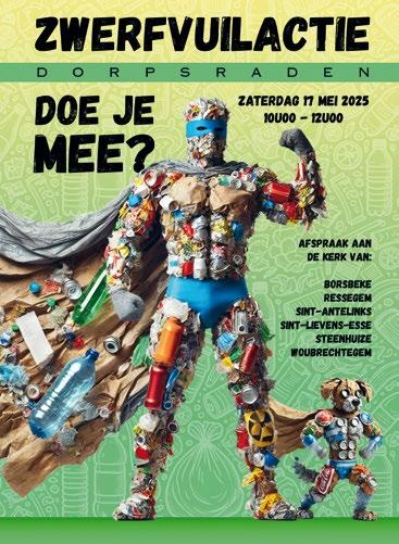 De dorpsraden van Borsbeke, Ressegem, Sint-Antelinks, Sint-Lievens-Esse, Steenhuize en Woubrechtegem organiseren op zaterdag 17 mei 2025 een zwerfvuilactie. Het is de bedoeling om deze jaarlijks te herhalen.