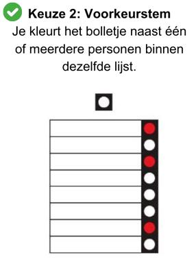 Je mag tegelijk het bolletje van een lijst en één of meerdere naamstemmen binnen diezelfde lijst inkleuren. Alleen de naamstemmen tellen mee.