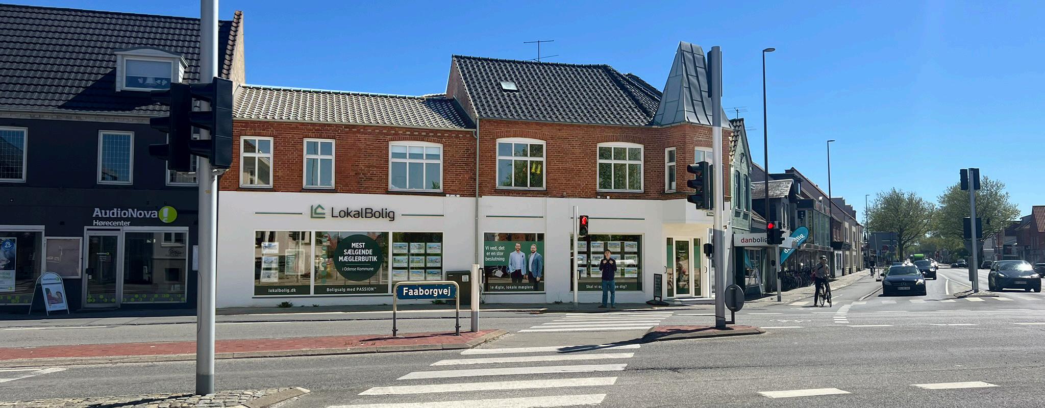 EnkøreturgennemOdenseSVafslørerhurtigt mæglerbutikkenmeddetgrønneskilt,derligger centraltiDalum-krydset Pådeomkringliggende vejeerdetogsåsværtatoverseLokalBoligDalumHjallese,daindehavernesansigtererpåmangetilsalgogsolgt-skilte