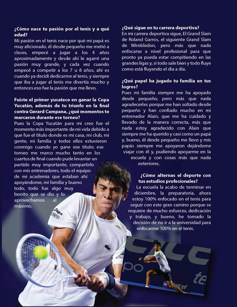 Este joven yucateco nos habla de sus inicios, sus logros, como combina el deporte con sus estudios y la pasión que lo inspira, un verdadero campeón del tenis mundial.