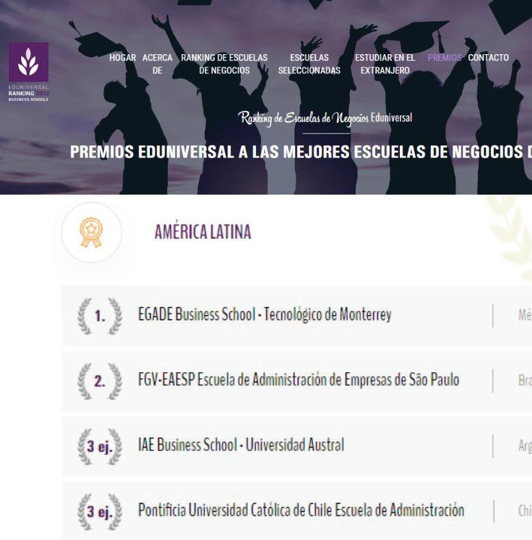 Debido a que eduniversal, un sitio que, con base a un análisis, arma el ranking de las universidades mejor posicionadas por sus programas y desarrollo de sus egresados en el ámbito laboral.