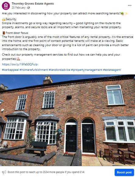A Facebook post series advising landlords how they can boost their kerb appeal to increase their tenant enquiries.
