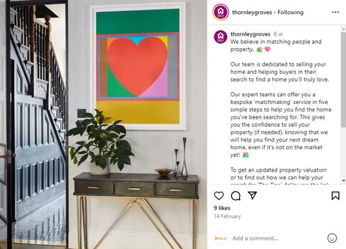 Valentine’s Day post promoting our property ‘matchmaking’ service with the call to action ‘book a valuation’.