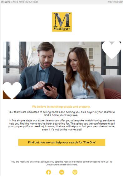 Valentines themed emails to vendors who had a valuation previously but not come onto the market with us and buyers who have not found a property with us.
